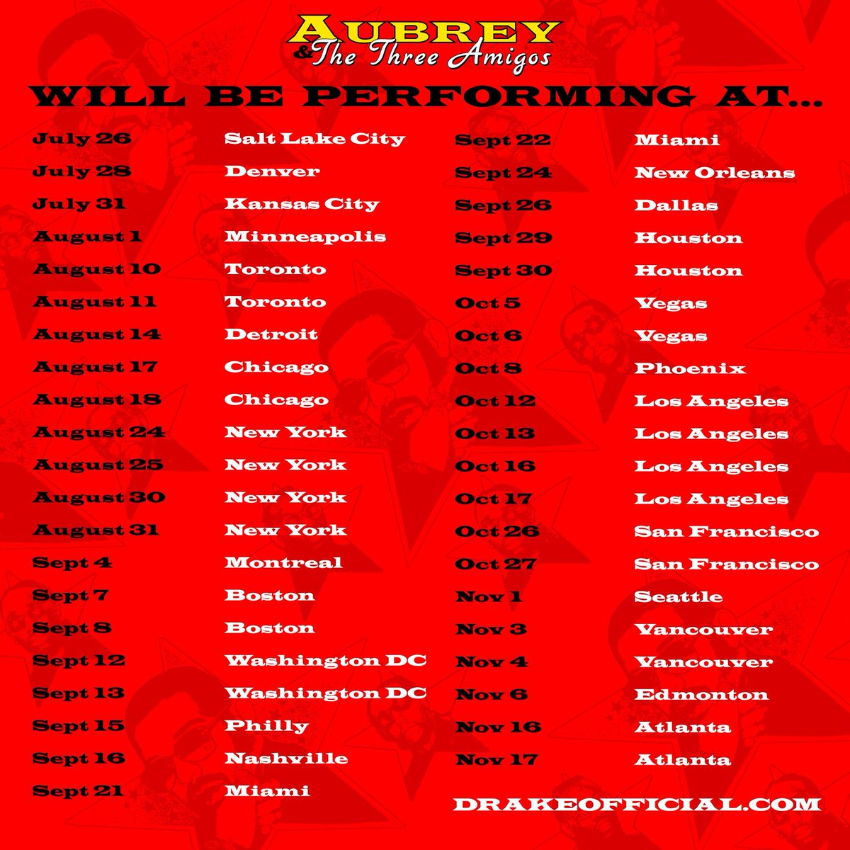 On sale tba more info. Drake s atlantic city appearance will follow a concert earlier that evening at philadelphia s wells fargo center as part of his aubrey and the three migos tour. 15 as part of his aubrey and the three amigos tour previously migos and drake released a joint single walk it talk it as part of the rap trio s culture ii earlier this year. More information can be found at the xpn concert calendar.